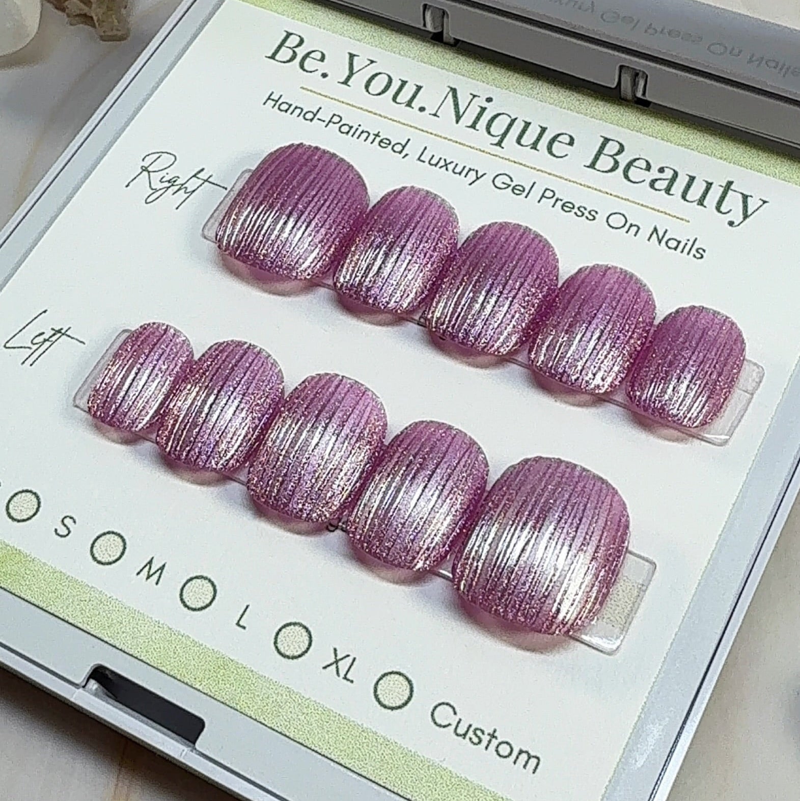 The pictured set is shown on XXX Short Soft Square. Experience the beauty and ease of BeYouNique Beauty press-on nails today!