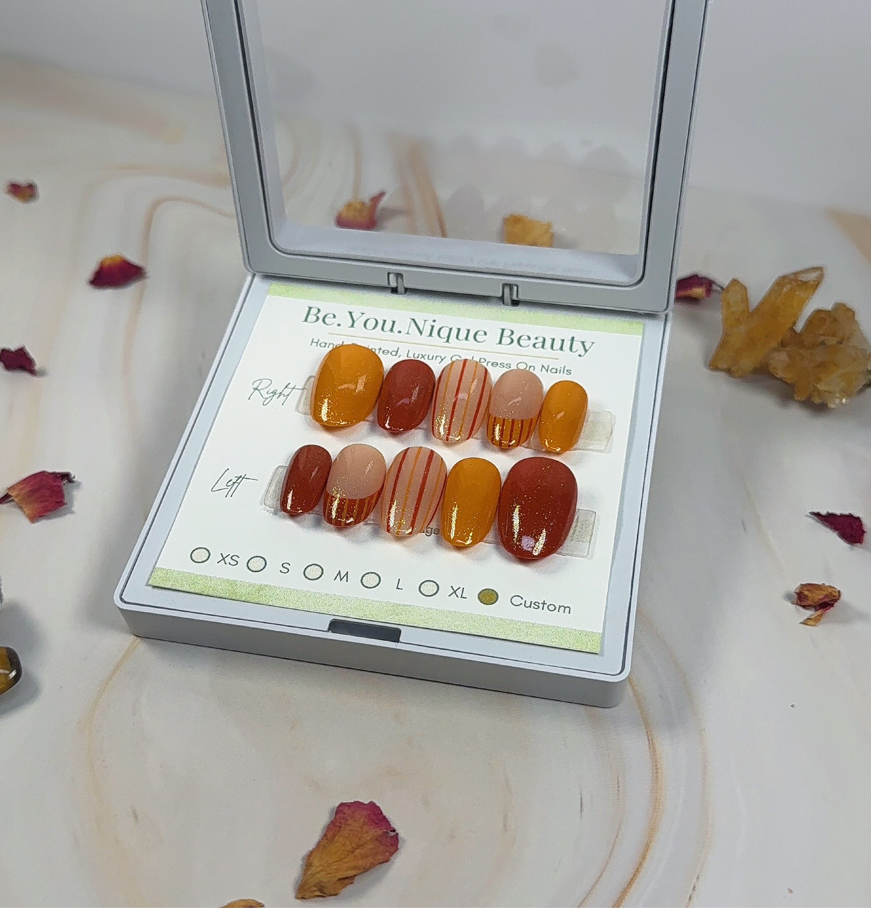 All of our custom-made press-on nail sets are lovingly handcrafted using salon-grade materials, including Apres Gel Tips, Fuzion, and Ugly Duckling gel. This ensures you get a durable and reusable at-home manicure that feels just like the salon!