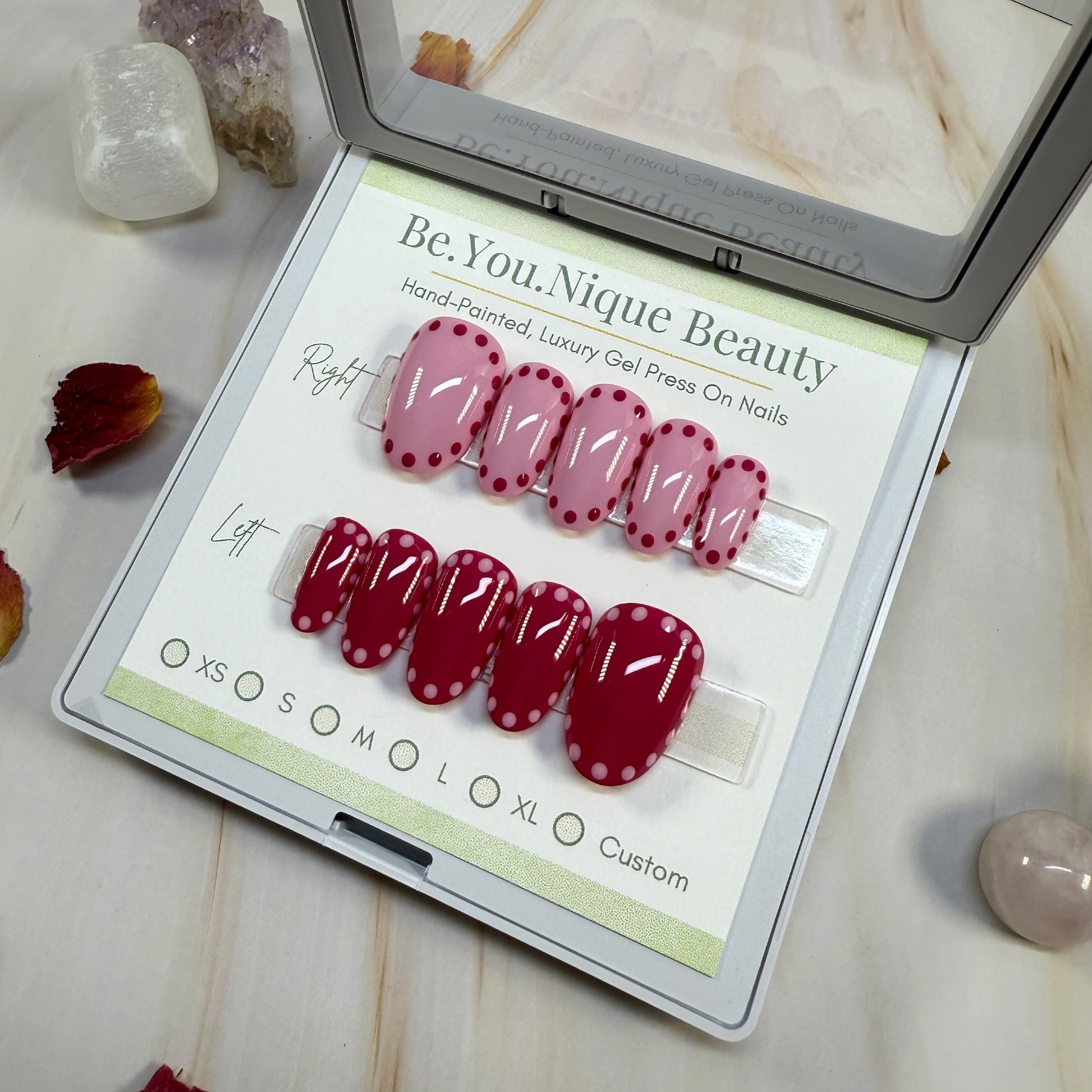 Get ready to transform your nail game with Pretty in Polka Dots from your favourite virtual Nail Techs! This luxury gel manicure is designed to revolutionize your nail routine and elevate your style.