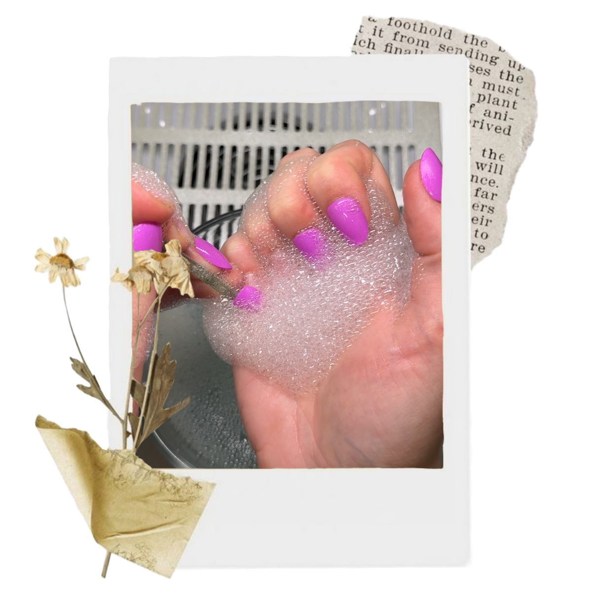 1. Soak your nails in a small bowl of warm soapy water, dish soap works great! Allow your nails to soak for 10-15 minutes