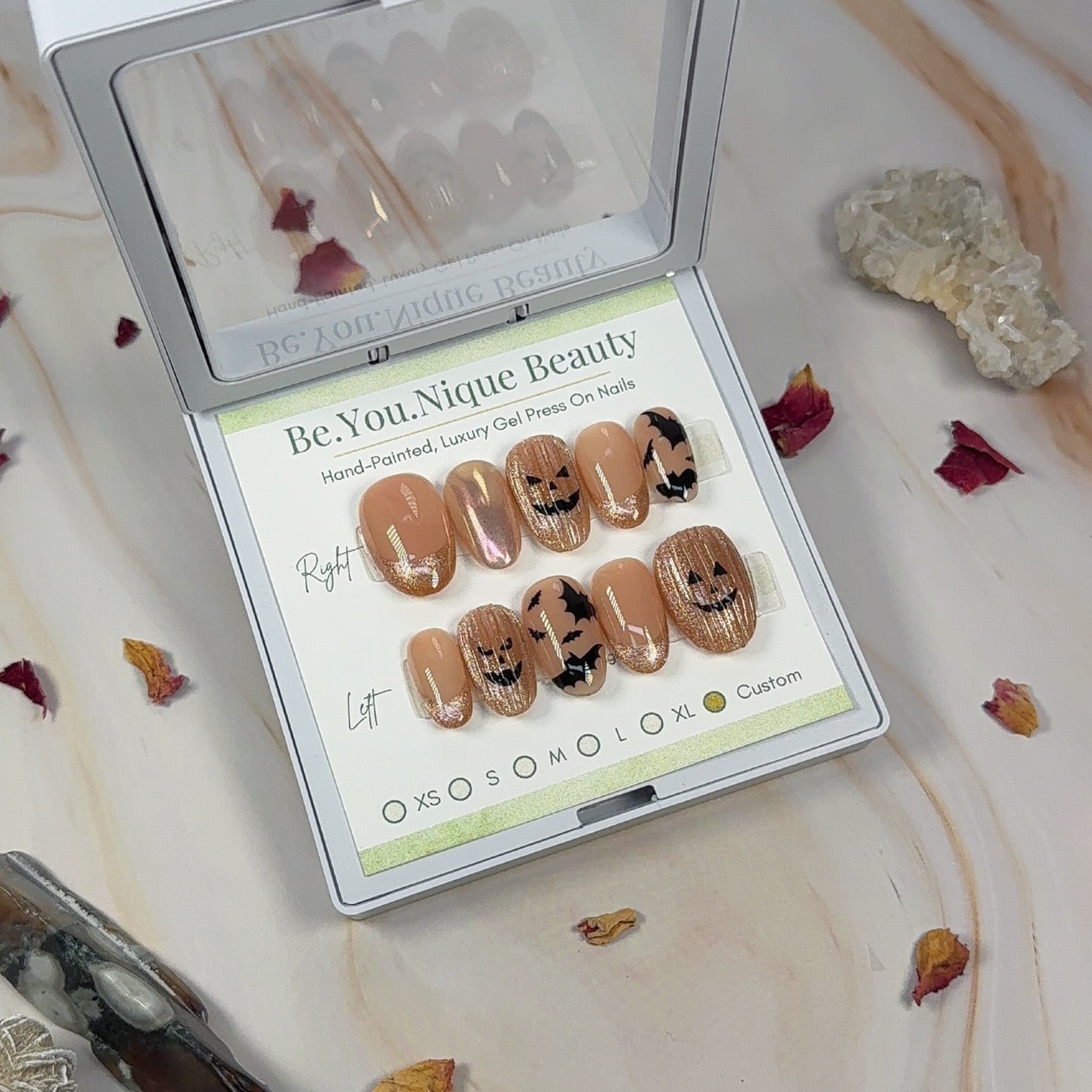 The pictured set is shown on Medium Almond. Experience the beauty and ease of BeYouNique Beauty press-on nails today!